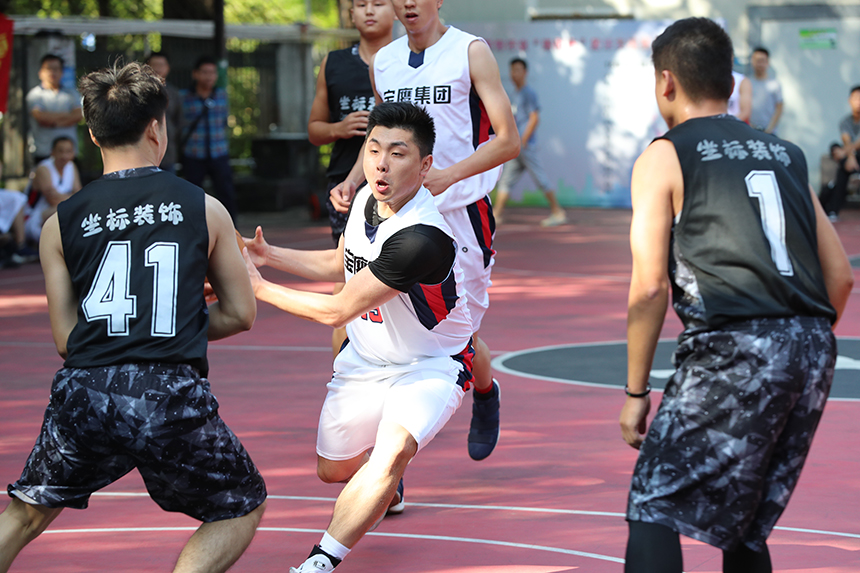 ▲9月23日小組循環(huán)賽中,寶鷹集團(tuán)以絕對(duì)優(yōu)勢(shì)領(lǐng)先新藝華建筑、華加日幕墻籃球隊(duì),提前出線晉級(jí)本次籃球賽十六強(qiáng)。