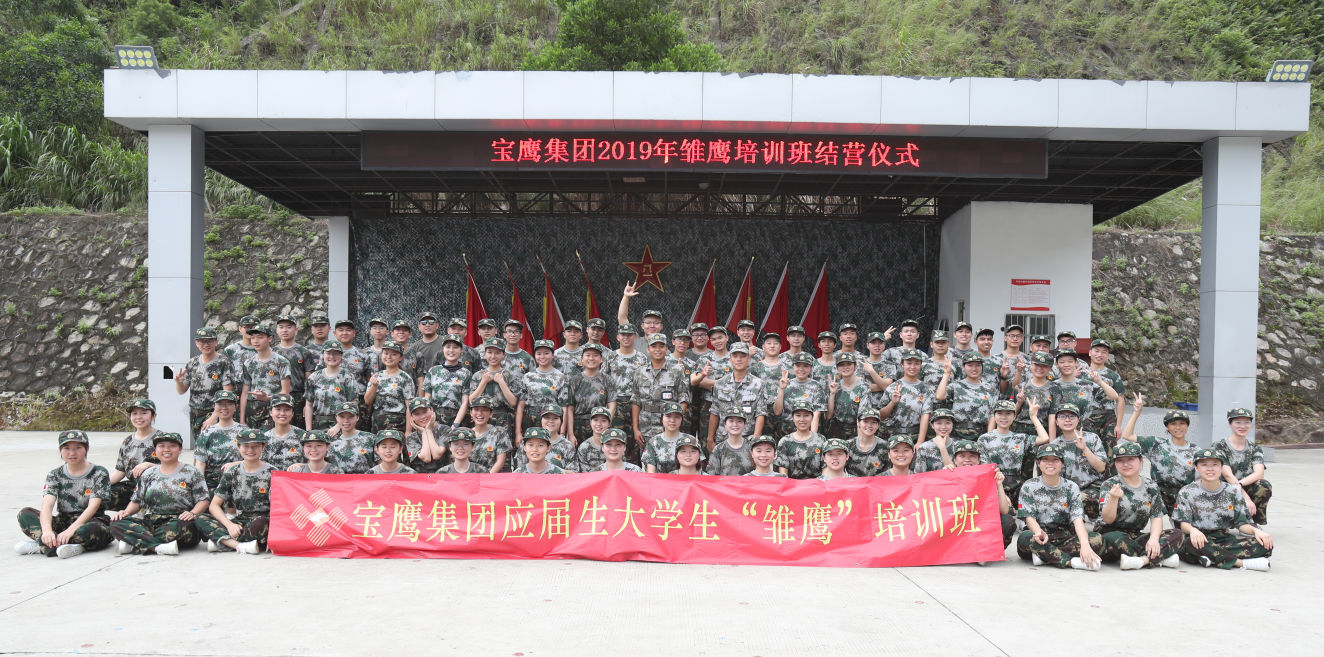 2019年共有來(lái)自全國(guó)各地的80名應(yīng)屆畢業(yè)生加入寶鷹集團(tuán)“雛鷹”計(jì)劃。7月7日起,雛鷹們?cè)谏钲谑芯C合素養(yǎng)實(shí)踐教育基地集結(jié),展開(kāi)為期16天的“軍訓(xùn)+拓展+內(nèi)訓(xùn)”三合一集訓(xùn)。