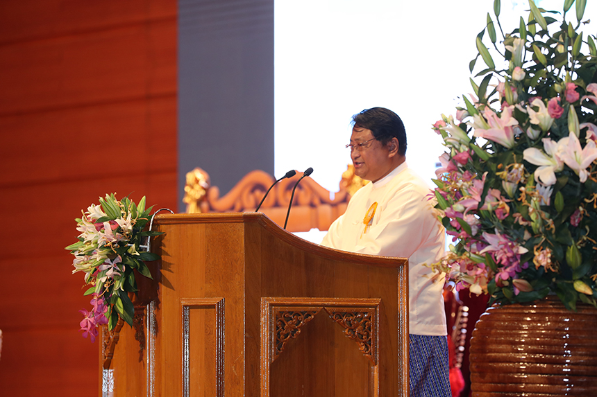▲緬甸副總統(tǒng)吳敏瑞為論壇鳴鑼開幕