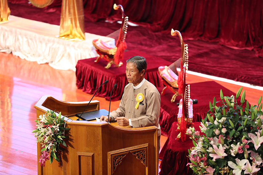 ▲緬甸投資發(fā)展協(xié)會主席、緬甸KMA集團(tuán)主席欽茂皚致辭