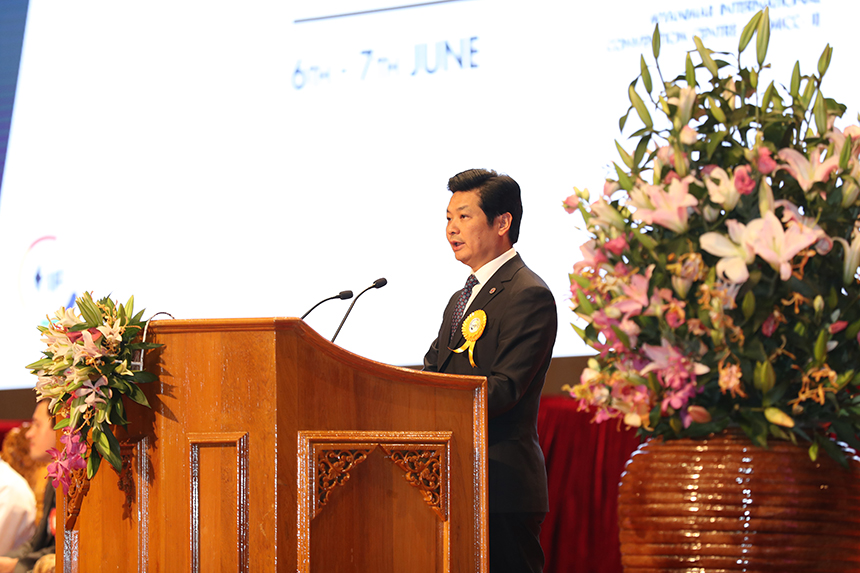 6月6日,由緬甸國家投資發(fā)展協(xié)會主辦的2017年度緬甸投資論壇在內(nèi)比都緬甸國際會議中心開幕。本屆論壇是緬甸最高規(guī)格國際論壇之一。緬甸副總統(tǒng)吳敏瑞、緬甸各部長、高級官員、經(jīng)濟(jì)顧問,以及來自中國、美國、英國、日本、加拿大、印度、泰國、新加坡等20多個國家的外交使團(tuán)、企業(yè)家、投資者等600余人出席活動。寶鷹集團(tuán)董事局主席古少明受邀參加論壇,并代表中資企業(yè)發(fā)表主題演講。