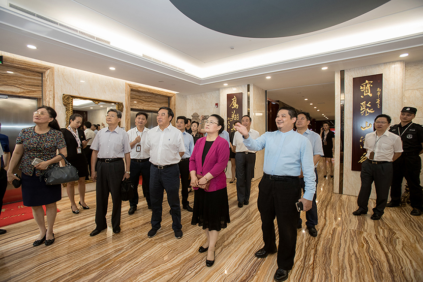 ▲全國政協(xié)科教文衛(wèi)體委員會副主任、中國經(jīng)濟社會理事會副主席張秋儉一行參觀寶鷹集團辦公環(huán)境及寶鷹美術館