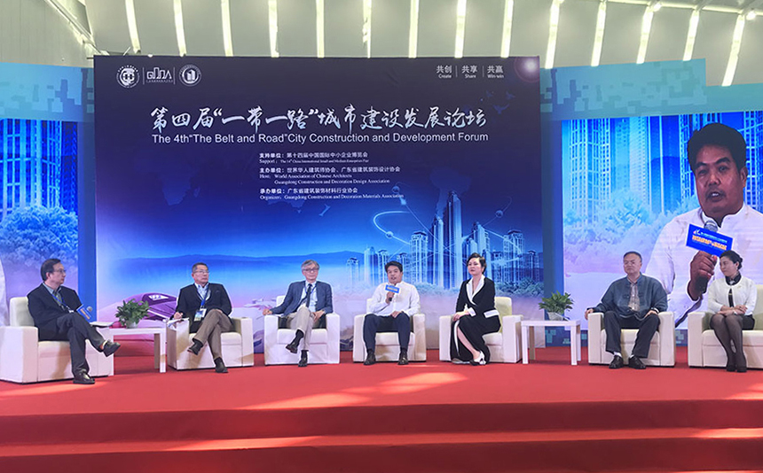 德國著名建筑大師蓋博、吉爾吉斯斯坦經濟部投資促進署署長奧倫姆茲別克、中國-東盟商務理事會執(zhí)行理事長許寧寧、世界華人建筑師協(xié)會會長沈埃迪、廣東省建筑裝飾材料行業(yè)協(xié)會與廣東省建筑裝飾設計協(xié)會會長蘭芳以及香港建筑師注冊管理局主席戚務誠、寶鷹股份董事長古少波分別就一帶一路城市建設中的發(fā)展需求、建筑師價值體現(xiàn)、中國產品標準與國外的差異、企業(yè)走出去與當?shù)匚幕某薪踊ト诘茸h題展開了深入交流與探討。