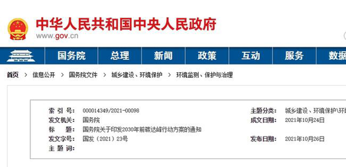 2、國務(wù)院關(guān)于印發(fā)2030年前碳達(dá)峰行動方案的通知