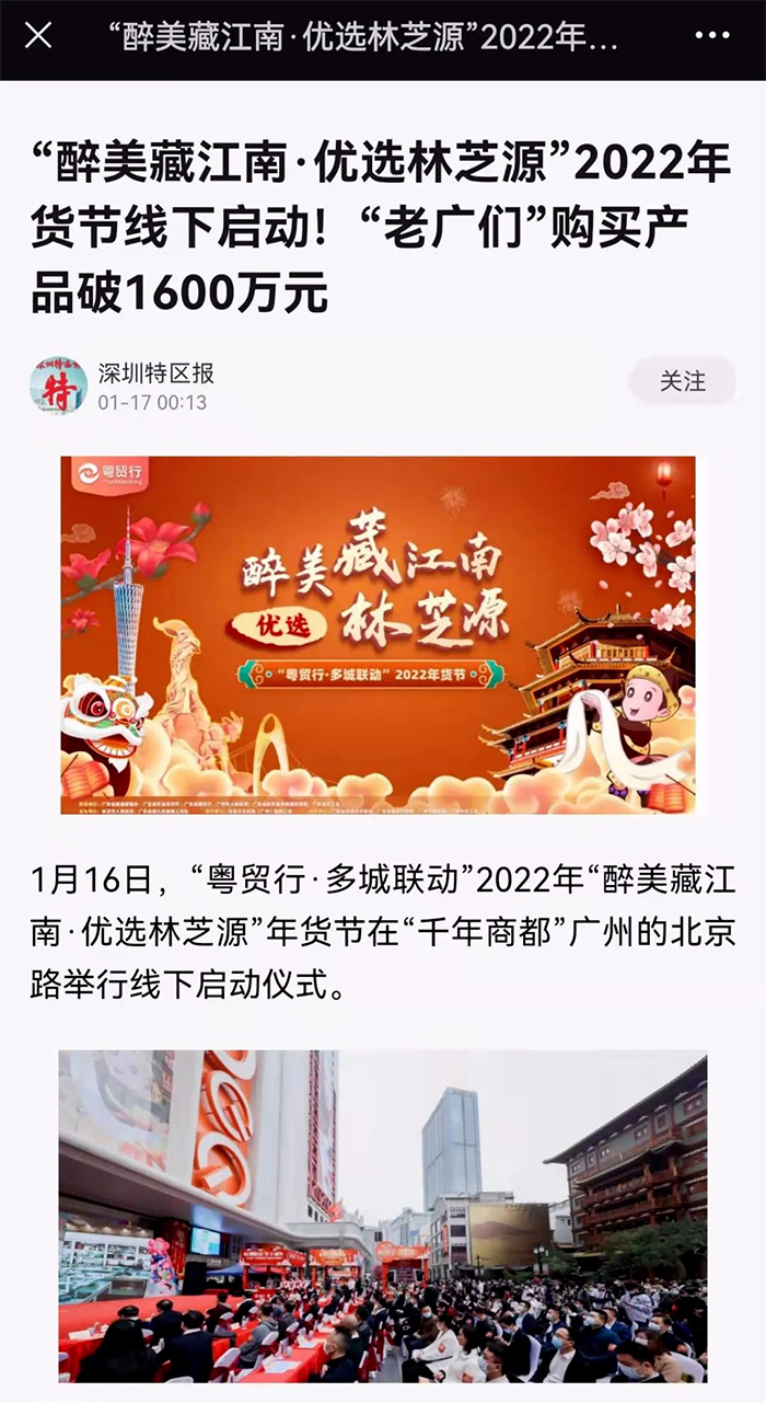 據(jù)了解,本次年貨節(jié)從2021年12月開始,將延續(xù)至2022年2月,通過“線上+線下”選購方式,依托林芝源“7+2”消費援藏平臺對接西藏林芝豐富的供應鏈資源,依托“粵貿(mào)行”貿(mào)易數(shù)字化平臺整合“粵省事”、“粵商通”、“粵政易”三大粵系列平臺資源,精準對接市場,進行文化賦能、數(shù)字賦能,把西藏林芝的地理標志產(chǎn)品、特色產(chǎn)品引進“千年商都”,推向粵港澳大灣區(qū),助力林芝產(chǎn)品乃至產(chǎn)業(yè)線上化。