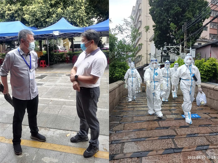深圳市南山區(qū)政協(xié)副主席黃險(xiǎn)峰到抗疫現(xiàn)場(chǎng)鼓勵(lì)和指導(dǎo)工作,深圳市南山區(qū)政協(xié)辦公室林樹瓊科長(zhǎng)和志愿者一同戰(zhàn)疫。
