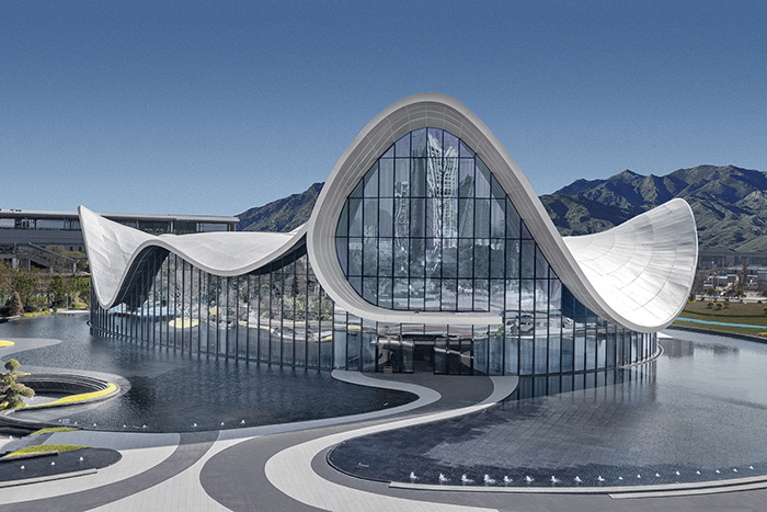 項目位于肇慶市鼎湖區(qū),總建筑面積5105平方米,定位為世界級度假目的地。其展示中心設(shè)計靈感來源于肇慶著名的風(fēng)景區(qū)七星巖以及肇慶市花荷花。以特殊的建筑造型,成為展示國家度假區(qū)以及肇慶文化旅游的形象窗口。
