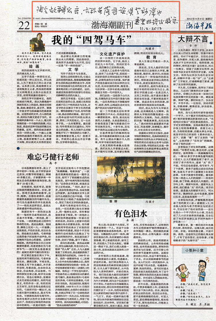 《人民日報》、《渤海早報》等具有影響力報紙刊登古樸副總裁文章《大辯不言》