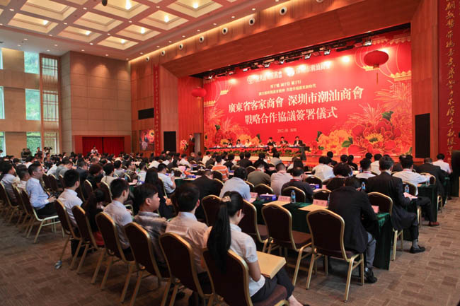廣東省客家商會、深圳市潮汕商會戰(zhàn)略合作協(xié)議簽字儀式現(xiàn)場