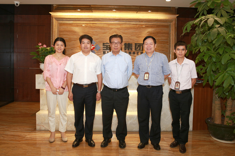 合影(中為深圳市企業(yè)聯(lián)合會、深圳市企業(yè)家協(xié)會吳井田執(zhí)行會長,左二為寶鷹集團(tuán)古少波董事長,右二為寶鷹集團(tuán)成湘文總裁)