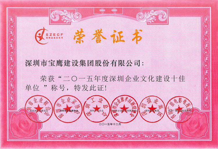 126家深圳企業(yè)在頒獎(jiǎng)典禮上獲得“特區(qū)設(shè)立35周年-深圳企業(yè)文化建設(shè)功勛企業(yè)”等榮譽(yù)。其中,寶鷹集團(tuán)憑借多年來(lái)沉淀的極富傳統(tǒng)與時(shí)代精神的企業(yè)文化內(nèi)涵,豐富多彩的企業(yè)文化表現(xiàn)形式,活潑多樣的企業(yè)文化活動(dòng)獲得多項(xiàng)企業(yè)文化建設(shè)殊榮,包括2015年度深圳企業(yè)文化建設(shè)十佳單位、特區(qū)設(shè)立35周年-深圳企業(yè)文化建設(shè)功勛企業(yè)、特區(qū)設(shè)立35周年-深圳企業(yè)文化建設(shè)功勛人物、2015年度深圳企業(yè)文化宣傳工作先進(jìn)單位與優(yōu)秀通訊員等獎(jiǎng)項(xiàng)。古少明主席、古少波董事長(zhǎng)、文化品牌部主管高升先后領(lǐng)取了各獎(jiǎng)項(xiàng)。