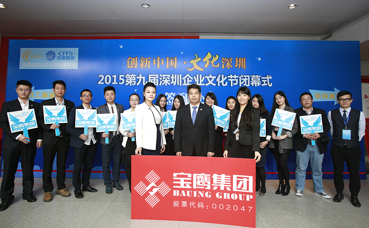 12月15日,由深圳市企業(yè)聯(lián)合會(huì)、深圳市企業(yè)家協(xié)會(huì)、深圳市企業(yè)文化研究會(huì)、深圳廣播電影電視集團(tuán)和深圳報(bào)業(yè)集團(tuán)聯(lián)合主辦的2015第九屆深圳企業(yè)文化節(jié)頒獎(jiǎng)典禮于深圳市民中心大禮堂盛大舉行,各級(jí)領(lǐng)導(dǎo)、126家企業(yè)的企業(yè)代表、媒體記者等人員共同參加了此次頒獎(jiǎng)典禮。寶鷹集團(tuán)董事局主席古少明,寶鷹股份董事長(zhǎng)古少波,總裁助理、人力資源部總經(jīng)理吳義課,文化品牌部總經(jīng)理董賓及各部門(mén)員工代表出席了此次頒獎(jiǎng)典禮。