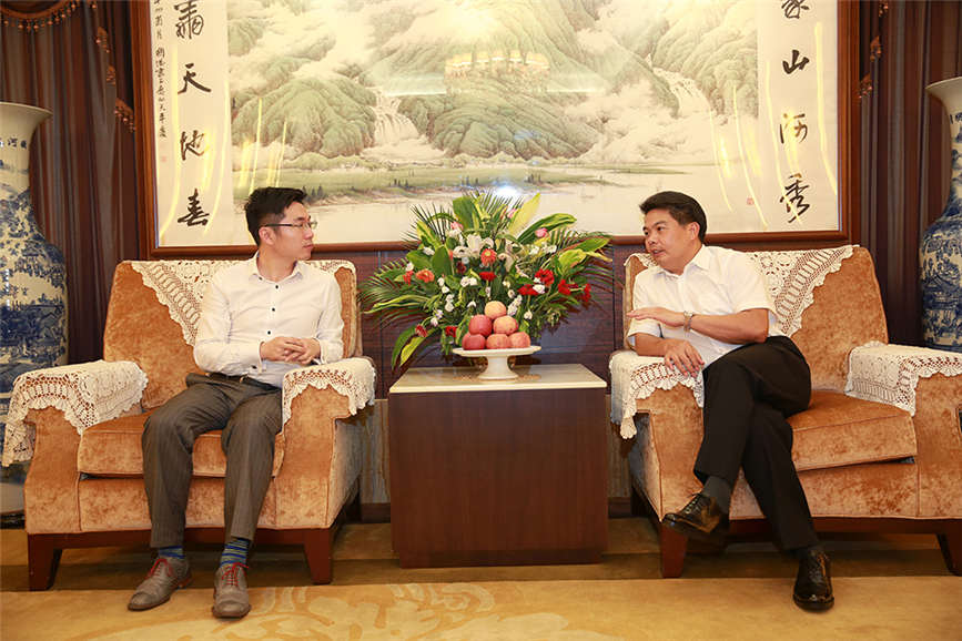 ▲古少波董事長與央視主播鄭峻峰暢談“一帶一路”戰(zhàn)略