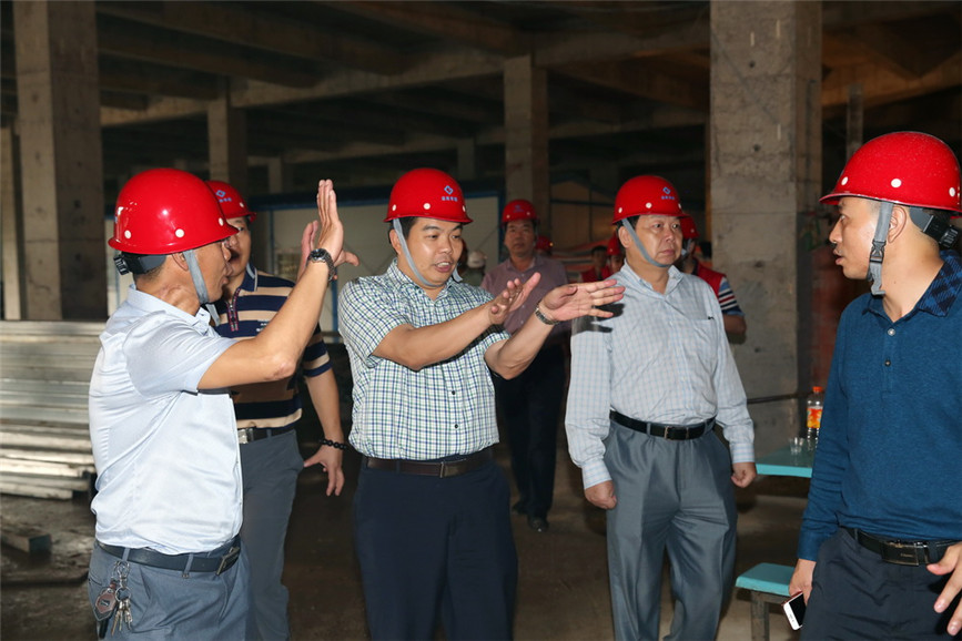隨后,在寶鷹集團(tuán)項(xiàng)目部工作人員的陪同下,雙方來到施工現(xiàn)場(chǎng),就工程建設(shè)的進(jìn)度問題仔細(xì)核對(duì)。在由寶鷹集團(tuán)負(fù)責(zé)施工的裙樓展示區(qū)幕墻工程施工現(xiàn)場(chǎng),古少波董事長(zhǎng)及寶鷹集團(tuán)眾高管就施工工藝、所用材料、項(xiàng)目施工難點(diǎn)等情況向項(xiàng)目部同事一一仔細(xì)詢問,并現(xiàn)場(chǎng)檢查安全施工事項(xiàng),叮囑現(xiàn)場(chǎng)施工人員嚴(yán)把安全生產(chǎn)關(guān)。