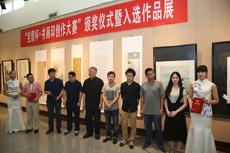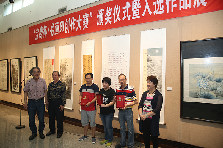 2015年4月,“寶鷹杯?書畫印創(chuàng)作大賽”在廣東廣播電視臺(tái)舉行了啟動(dòng)儀式,此后,大賽相繼收到了來(lái)自國(guó)內(nèi)各地、香港、澳門、臺(tái)灣以及美國(guó)、印尼等書畫印愛好者的大量來(lái)稿。截稿后,由北京、浙江、臺(tái)灣、香港及廣東本省共20位著名書畫家、篆刻家對(duì)參賽作品進(jìn)行了嚴(yán)格的初評(píng)和終評(píng),評(píng)選出國(guó)畫、書法、篆刻三大類獲獎(jiǎng)作品及入選作品共計(jì)92件,各項(xiàng)獎(jiǎng)項(xiàng)、獎(jiǎng)金至此“名花有主”。