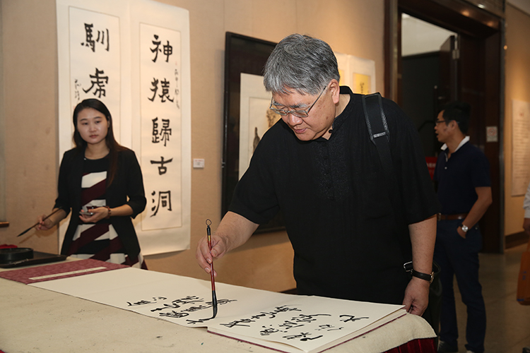 寶鷹集團(tuán)副總裁古樸首先對(duì)各位的關(guān)注和支持表達(dá)了感謝,對(duì)各位獲獎(jiǎng)?wù)弑硎咀YR,他說(shuō),寶鷹集團(tuán)主辦本次大賽,并非是一時(shí)之舉,經(jīng)常會(huì)有人問(wèn),寶鷹集團(tuán)作為一家建筑裝飾類上市公司,為什么不斷主辦文化講堂,辦寶鷹杯國(guó)際書畫印大賽,辦印尼寶鷹中國(guó)書畫邀請(qǐng)展。很簡(jiǎn)單,這是陰陽(yáng)正反思想。古樸副總裁還說(shuō),爺爺留下一句話,“欲培福地耕心地,且種書田作稻田?!焙?jiǎn)單說(shuō),就是:實(shí)業(yè)養(yǎng)身,文化養(yǎng)心。無(wú)實(shí)業(yè)不足以造福社會(huì),不養(yǎng)心則足令人走火入魔。令人欣慰的是,寶鷹杯國(guó)際書畫印大賽活動(dòng)的舉辦,竟然得到了如此眾多的愛好者涌躍參與,尤其受到了文化界名流的支持與肯定,受到了廣東廣播電視臺(tái)的高度重視。這說(shuō)明,正能量永遠(yuǎn)是中華大地社會(huì)主流!養(yǎng)身修心,寶鷹集團(tuán)將與諸位一道努力,我們永遠(yuǎn)在路上。