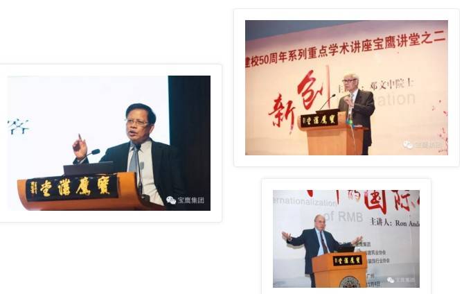 2015—2016年是寶鷹集團(tuán)內(nèi)向型企業(yè)文化建設(shè)向外向型企業(yè)文化建設(shè)的發(fā)展之年。寶鷹集團(tuán)以原本豐富充實(shí)的內(nèi)向型企業(yè)文化為根基,將集團(tuán)品牌活動“寶鷹講堂”推向社會,邀請美國華人科技總工會主席、美國哥倫比亞國際大學(xué)校長李大西博士,世界橋梁大師鄧文中院士,倫敦政治經(jīng)濟(jì)學(xué)院的Anderson教授走進(jìn)廣東外語外貿(mào)大學(xué),為千名學(xué)子帶來學(xué)術(shù)盛宴。 2016年,“寶鷹講堂”繼續(xù)牽手廣東外語外貿(mào)大學(xué),相繼邀請了世界著名水產(chǎn)工程學(xué)家、美國國家工程院院士王兆凱走進(jìn)大學(xué)校園開講。