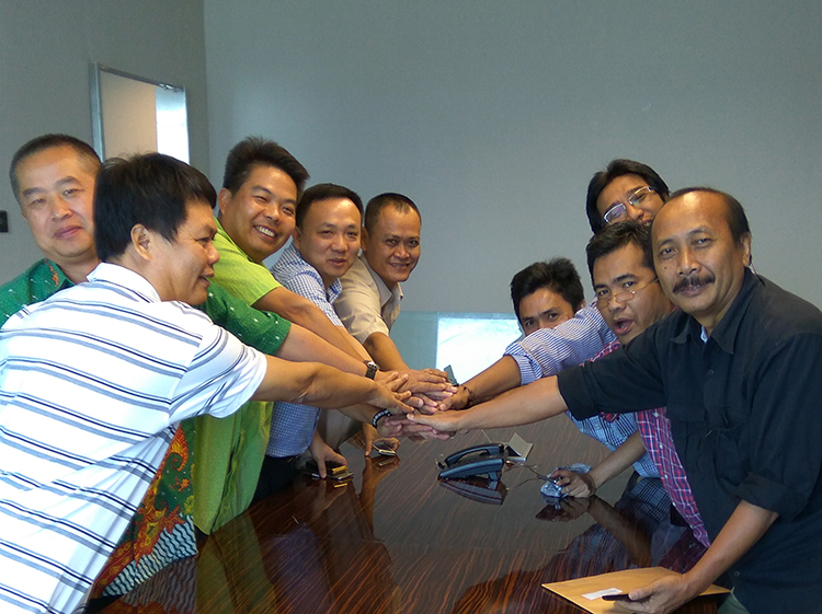 寶鷹股份董事長古少波與印尼寶鷹同事在項目所在地吉普特拉大樓合影