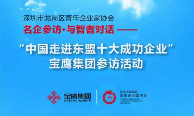 7月2日下午,由深圳市龍崗區(qū)青年企業(yè)家協(xié)會(huì)主辦的“名企參訪·與智者對(duì)話——‘中國走進(jìn)東盟十大成功企業(yè)’ 寶鷹集團(tuán)參訪活動(dòng)”在寶鷹集團(tuán)盛大舉行。