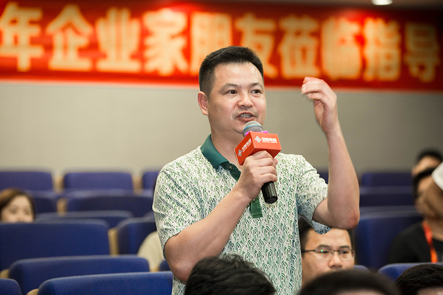 在接下來的交流活動(dòng)中,青年企業(yè)家代表們踴躍發(fā)言,就企業(yè)文化建設(shè)、如何在一帶一路沿線國家蓄力發(fā)展等問題與古樸副總裁展開了熱烈的互動(dòng)。深圳市鄉(xiāng)下仔綠色食品有限公司總經(jīng)理曾國忠就企業(yè)培訓(xùn)中面臨的問題與古樸副總裁展開了討論,曾國忠總經(jīng)理說,現(xiàn)在各種培訓(xùn)開展火熱,很難去選擇一個(gè)標(biāo)準(zhǔn)去判斷培訓(xùn)的價(jià)值與意義。古樸副總裁從培訓(xùn)的目的就是提高管理者及員工“自學(xué)、自立”能力這一角度回答了相關(guān)問題。