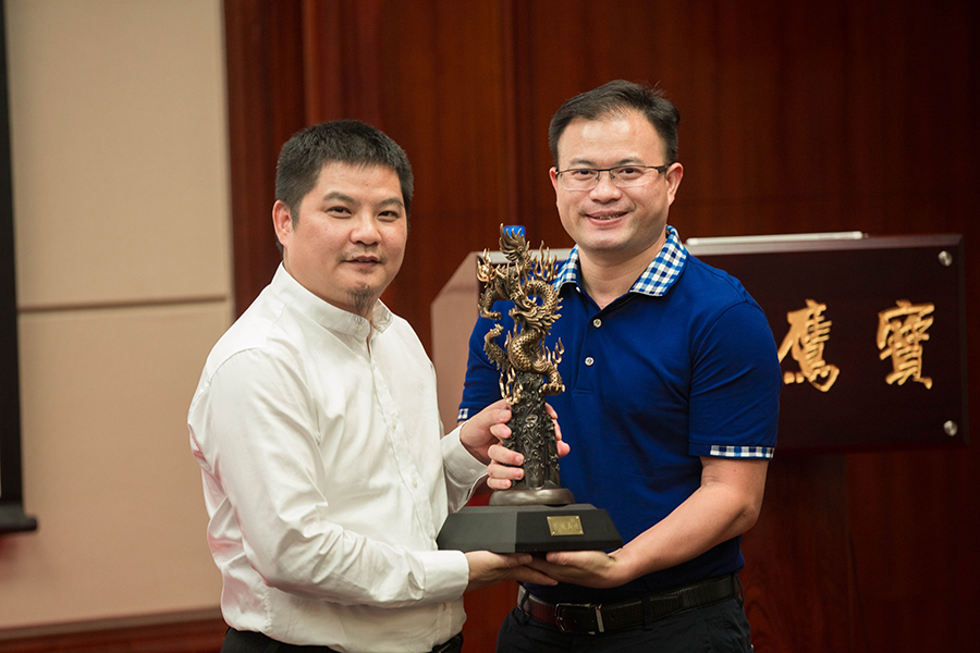 精彩的討論獲得了在場(chǎng)企業(yè)家們的陣陣熱烈掌聲。討論會(huì)后,深圳市龍崗團(tuán)區(qū)委書記郭躍華、團(tuán)區(qū)委副書記鄒慧鋒共同向古樸副總裁贈(zèng)送了紀(jì)念品。