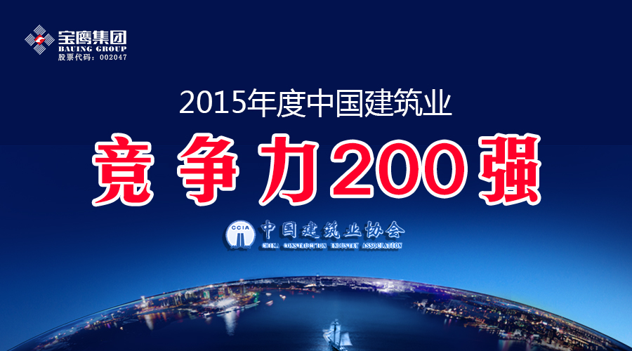 2015年度中國建筑業(yè)雙200強企業(yè)評價結(jié)果日前揭曉,寶鷹集團入圍競爭力200強企業(yè)。
