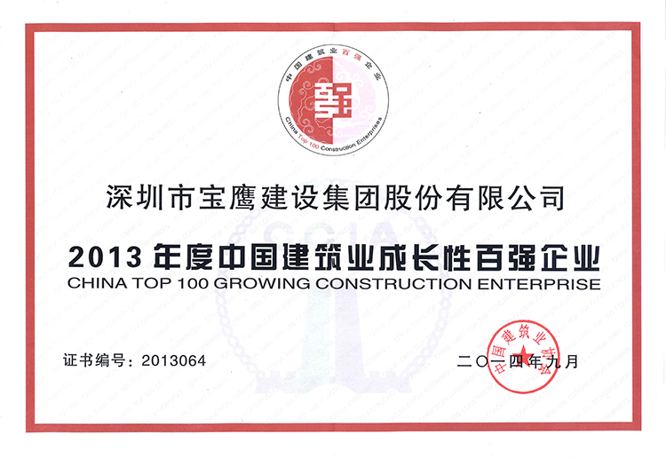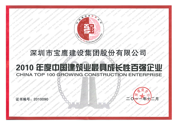 寶鷹集團連續(xù)五年榮獲“中國建筑業(yè)最具成長性企業(yè)”榮譽