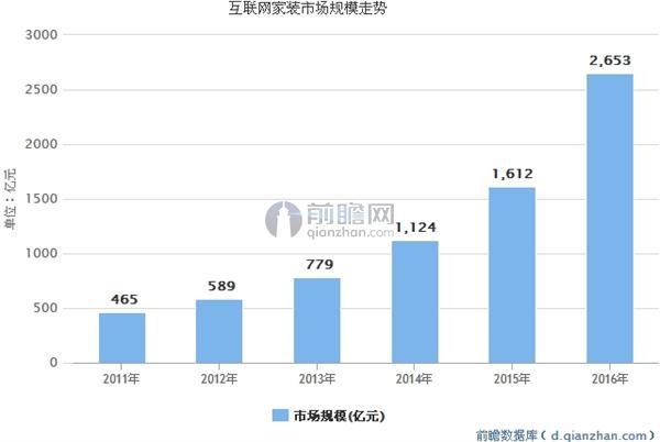 前瞻產(chǎn)業(yè)研究院發(fā)布的《互聯(lián)網(wǎng)家裝行業(yè)分析報(bào)告》指出,目前互聯(lián)網(wǎng)家裝仍在萌芽狀態(tài),互聯(lián)網(wǎng)家裝僅占整體行業(yè)的3.8%,與傳統(tǒng)家裝對(duì)比懸殊。但家裝行業(yè)作為一項(xiàng)重資產(chǎn)、高客單價(jià)的行業(yè),在國(guó)內(nèi)有著萬(wàn)億級(jí)別的市場(chǎng),在互聯(lián)網(wǎng)的大潮沖擊下,早早就開(kāi)始了轉(zhuǎn)型,然而由于行業(yè)本身鏈條冗長(zhǎng),創(chuàng)新速度較慢,早起的市場(chǎng)發(fā)展增速并不快,從2014年始互聯(lián)網(wǎng)家裝開(kāi)始收到資本重視,2015融資潮再次爆發(fā),市場(chǎng)規(guī)模達(dá)到1612億元,預(yù)計(jì)在今年市場(chǎng)規(guī)模將達(dá)到2653億。